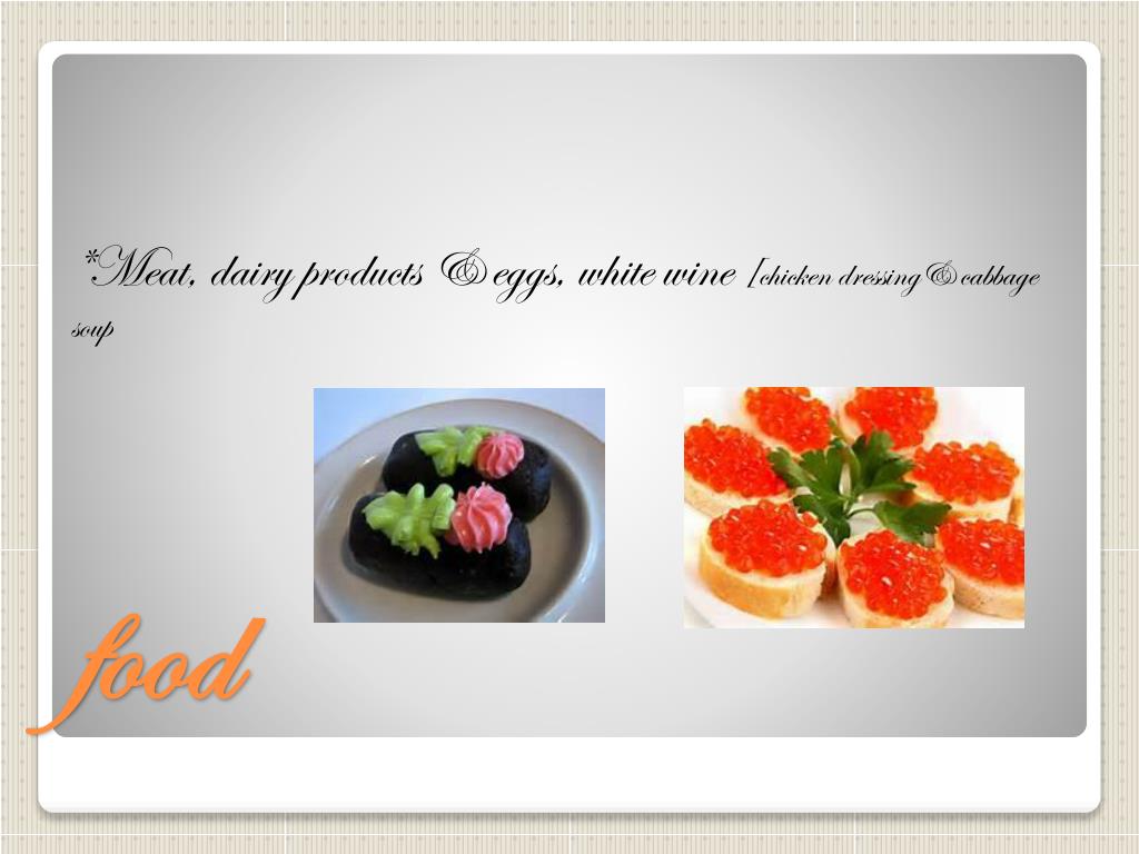 *Meat, dairy products & eggs, white wine [chicken dressing& cabbage soup food
