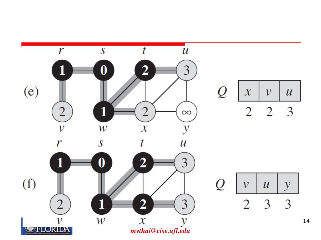 Queue Q contains all discovered but not finished vertices – gray vertices My T. Thai mythai@cise.ufl.edu