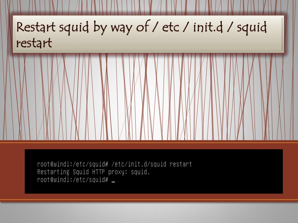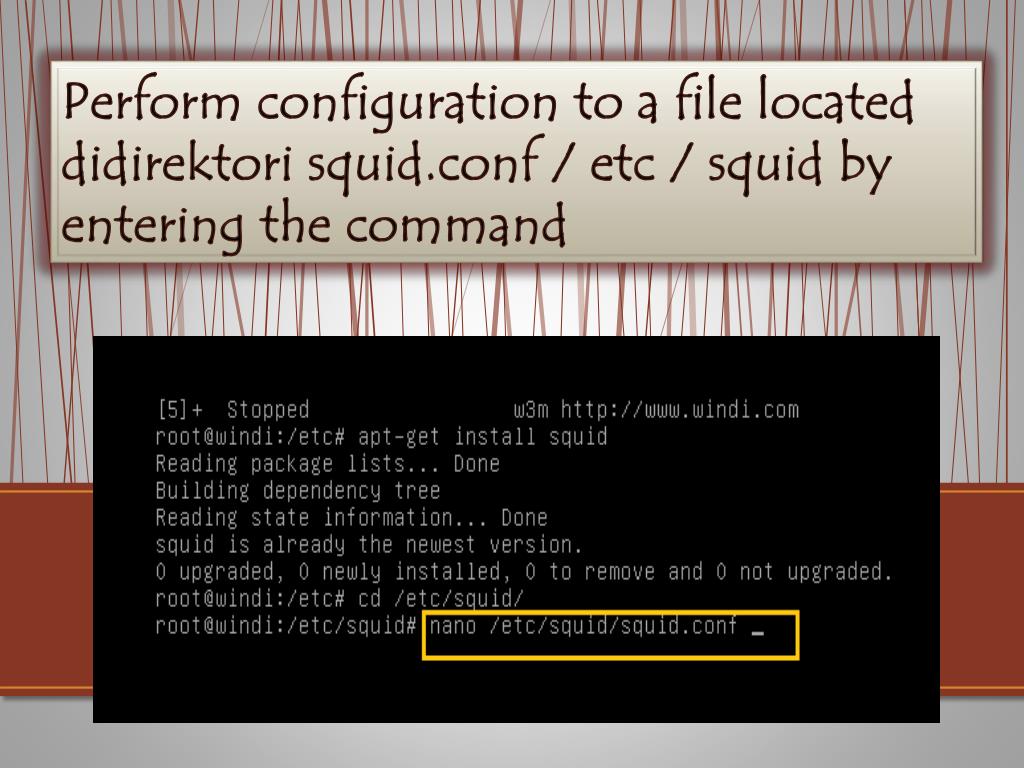 Perform configuration to a file located didirektorisquid.conf / etc / squid by entering the command