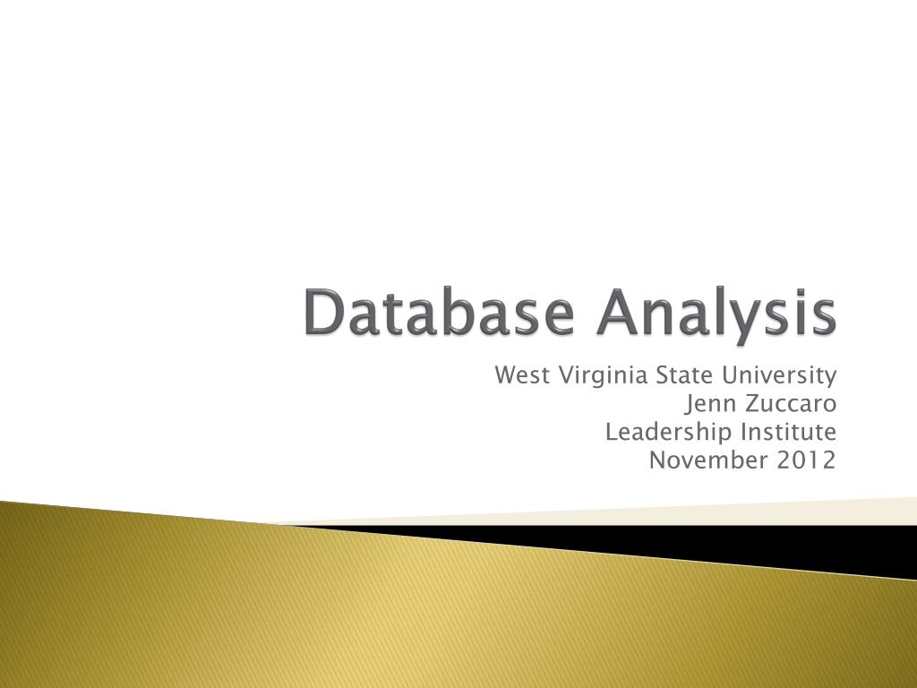 Database Analysis West Virginia State University JennZuccaro Leadership Institute November 2012