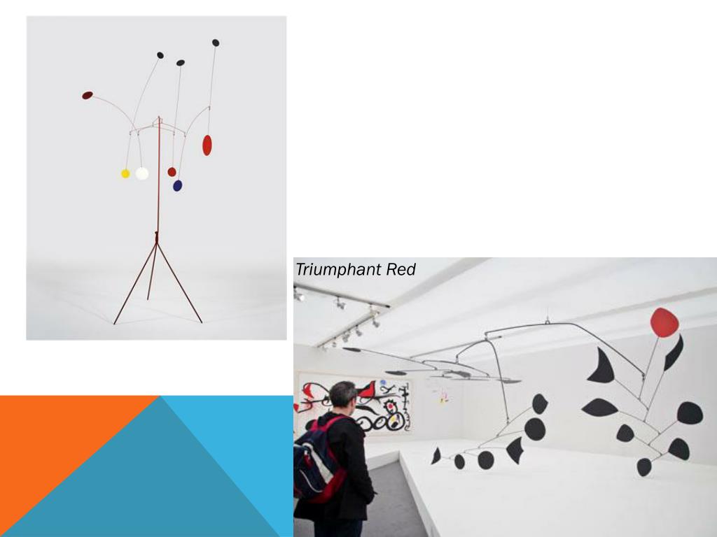 Alexander Calder- prekursor sztuki kinetycznej • rzeźbiarz, malarz, ilustrator i grafik amerykański, członek grupy Abstraction-Création, jeden z głównych przedstawicieli sztuki kinetycznej. • Tworzył malarstwo abstrakcyjne, barwną grafikę oraz słynne formy przestrzenne, przeważnie metalowe, najpierw statyczne (tzw. stabile), potem ruchome (tzw. mobile, poruszane powiewem powietrza lub przy pomocy silniczków). Konstruował także wielkie rzeźby plenerowe. Wywarł silny wpływ na współczesną rzeźbę. http://www.youtube.com/watch?feature=player_detailpage&v=sY1fNdKzBjc http://www.youtube.com/watch?feature=player_embedded&v=t6jwnu8Izy0