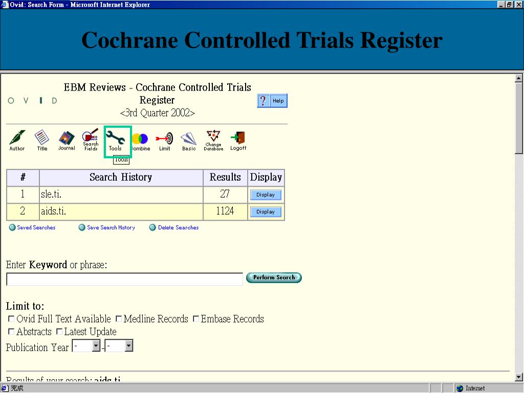 Browse Funtion • CDSR – Browse topic/53 groups • ACP – Browse Journal • CCTR - Tools