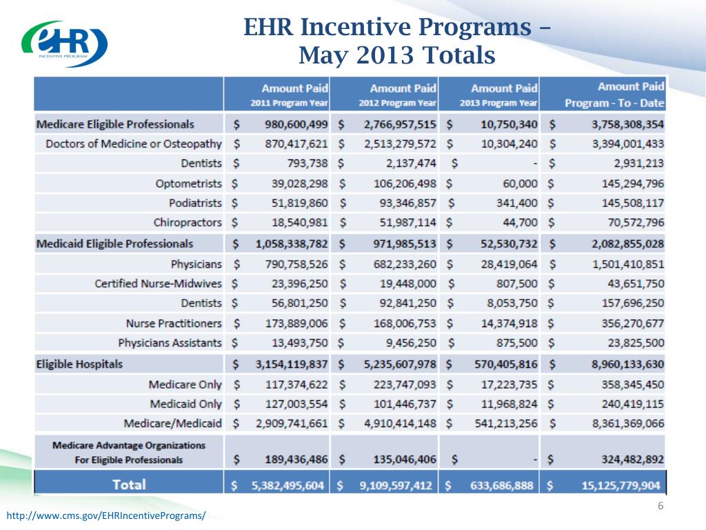 Medicaid Incentive Payments Medicaid Incentive Payments – May 2013 (Both MU and AIU) For final CMS reports, please visit: http://www.cms.gov/EHRIncentivePrograms/56_DataAndReports.asp