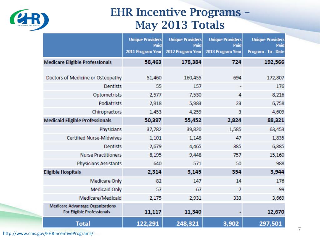 EHR Incentive Programs – May 2013 Totals EHR Incentive Programs