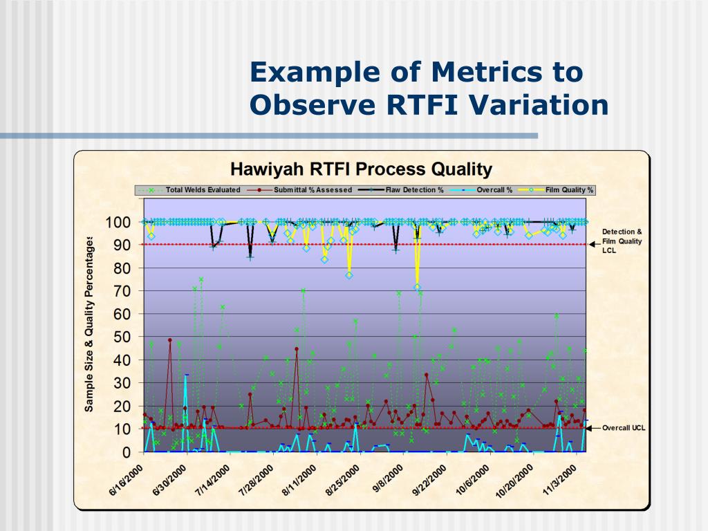 Goal for RTFI Process Reliability:Stay on Target! • Limit POD variability to ensure design estimate of part imperfection distribution is accurate 1 Probability of Detection (POD) RTFI Process Target Historical design assumption for RT/RTFI process 0 Flaw/Defect size