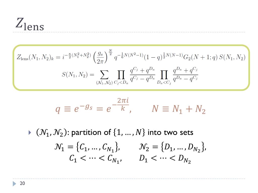 Comments • -hypergeometric function • Normalization Need to continue “ungauged” MM partition function Also need -prescription: