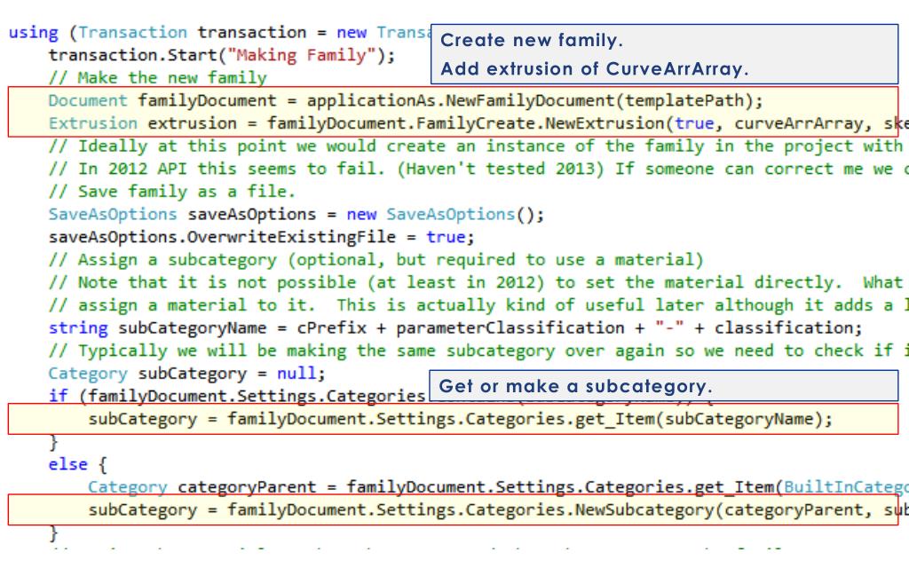 Create new family. Add extrusion of CurveArrArray. Get or make a subcategory.