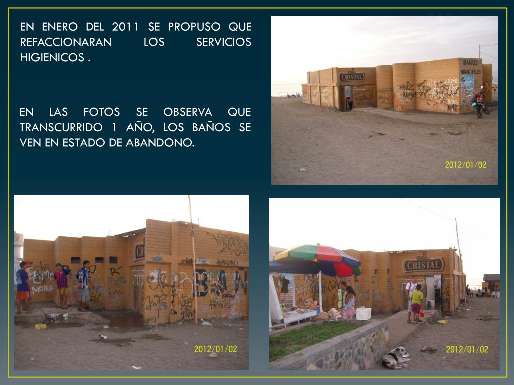 EN ENERO DEL 2011 SE PROPUSO QUE REFACCIONARAN LOS SERVICIOS HIGIENICOS . EN LAS FOTOS SE OBSERVA QUE TRANSCURRIDO 1 AÑO, LOS BAÑOS SE VEN EN ESTADO DE ABANDONO.