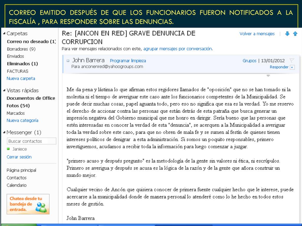 CORREO EMITIDO DESPUÉS DE QUE LOS FUNCIONARIOS FUERON NOTIFICADOS A LA FISCALÍA , PARA RESPONDER SOBRE LAS DENUNCIAS.