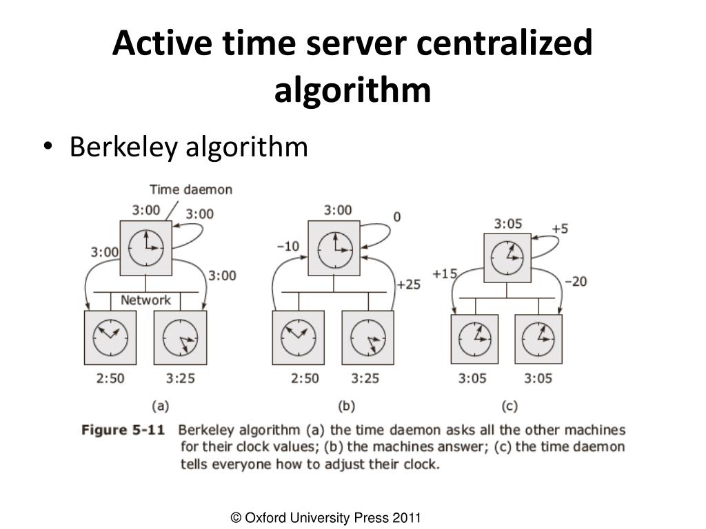 Total ordering of events • Conditions for assigning time: • If a happens before b in the same process P, then C(a)< C(b) • If a and b represent the sending and receiving of a message, then C(a)< C(b) • For all distinct events a and b, C(a) not = C(b)