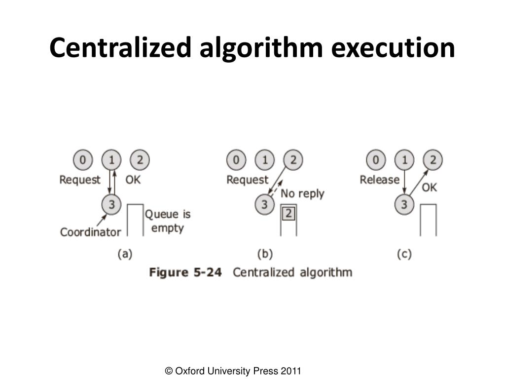 Mutual exclusion algorithms • Centralized Algorithm • Distributed Algorithm • Token Ring Algorithm