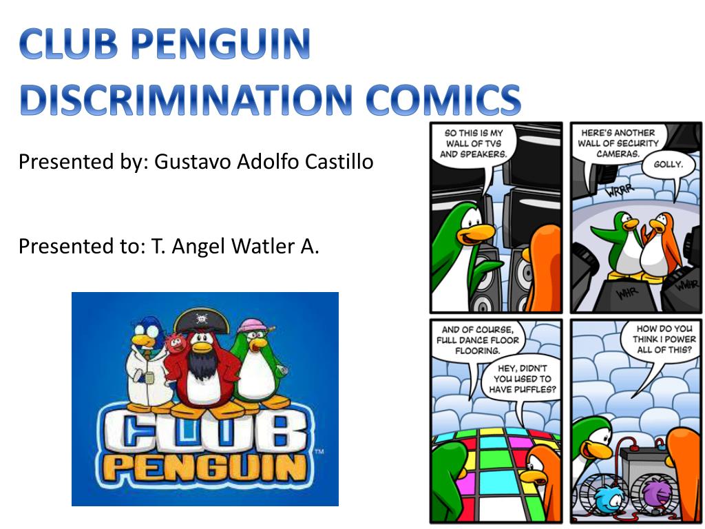 CLUB PENGUIN DISCRIMINATION COMICS. Presented by: Gustavo Adolfo Castillo Presented to: T. Angel Watler A. What is discrimination?. . Discrimination is to don’t accept someone in your group or exclude him/her from all the activities because has a difference between you and the person.