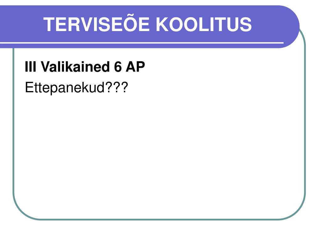 TERVISEÕE KOOLITUS III Valikained 6 AP Ettepanekud???