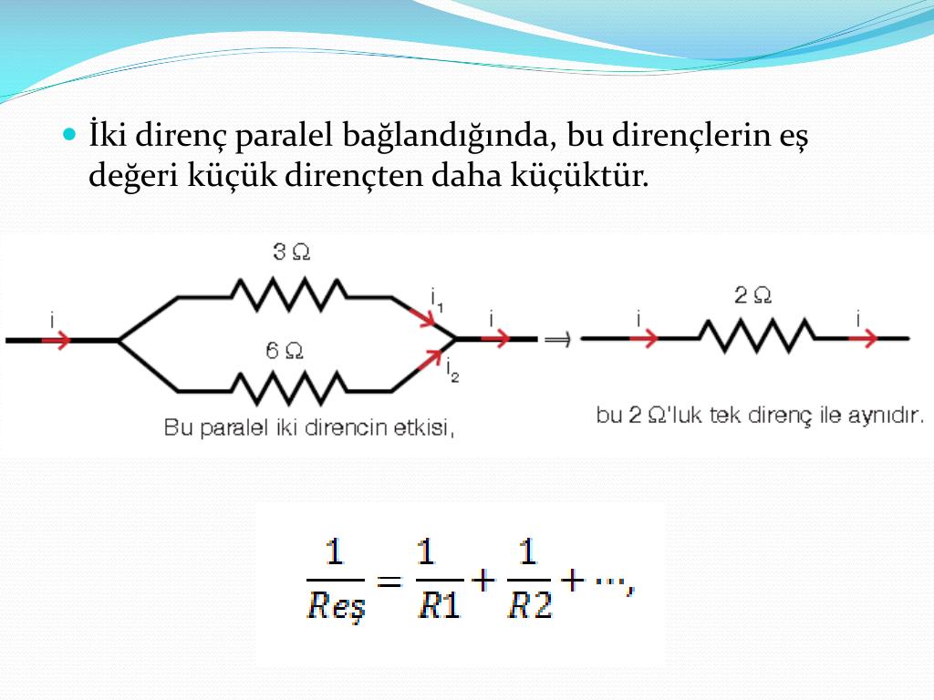 İki direnç paralel bağlandığında, bu dirençlerin eş değeri küçük dirençten daha küçüktür.