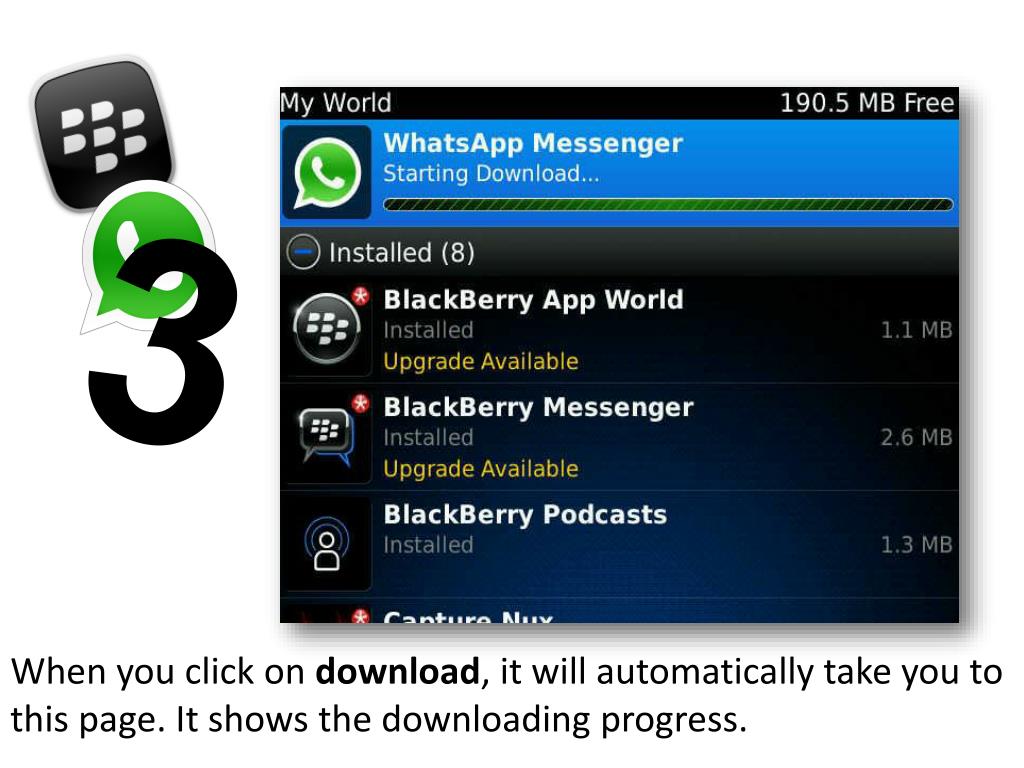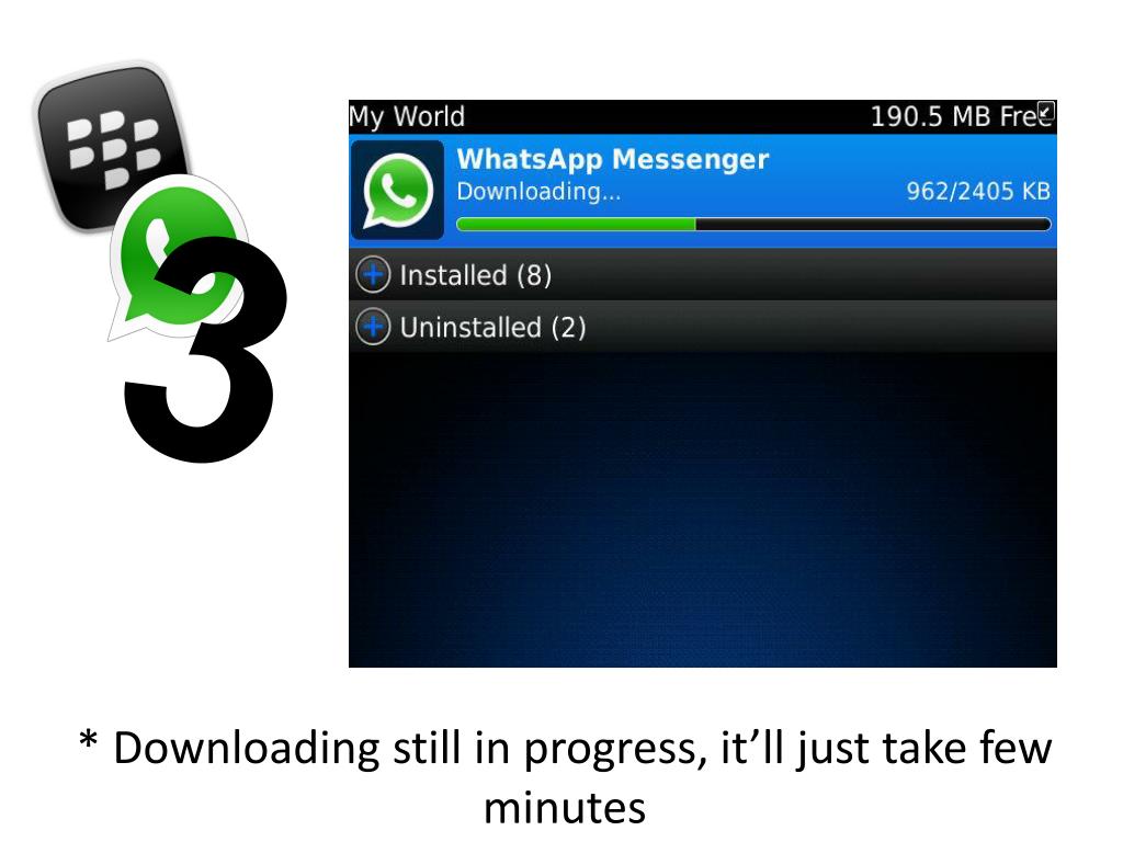 WhatsAppBlackBerry First Step is to search for it through App World which is available in all Blackberry devices.