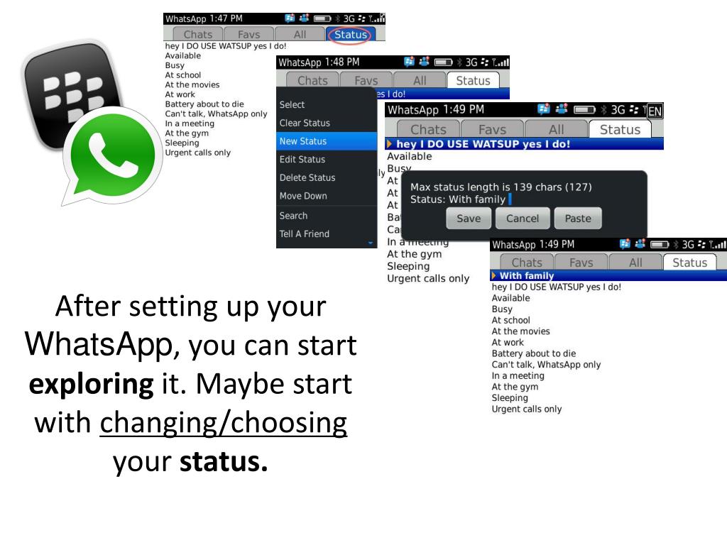 After setting up your WhatsApp, you can start exploring it. Maybe start with changing/choosing your status.