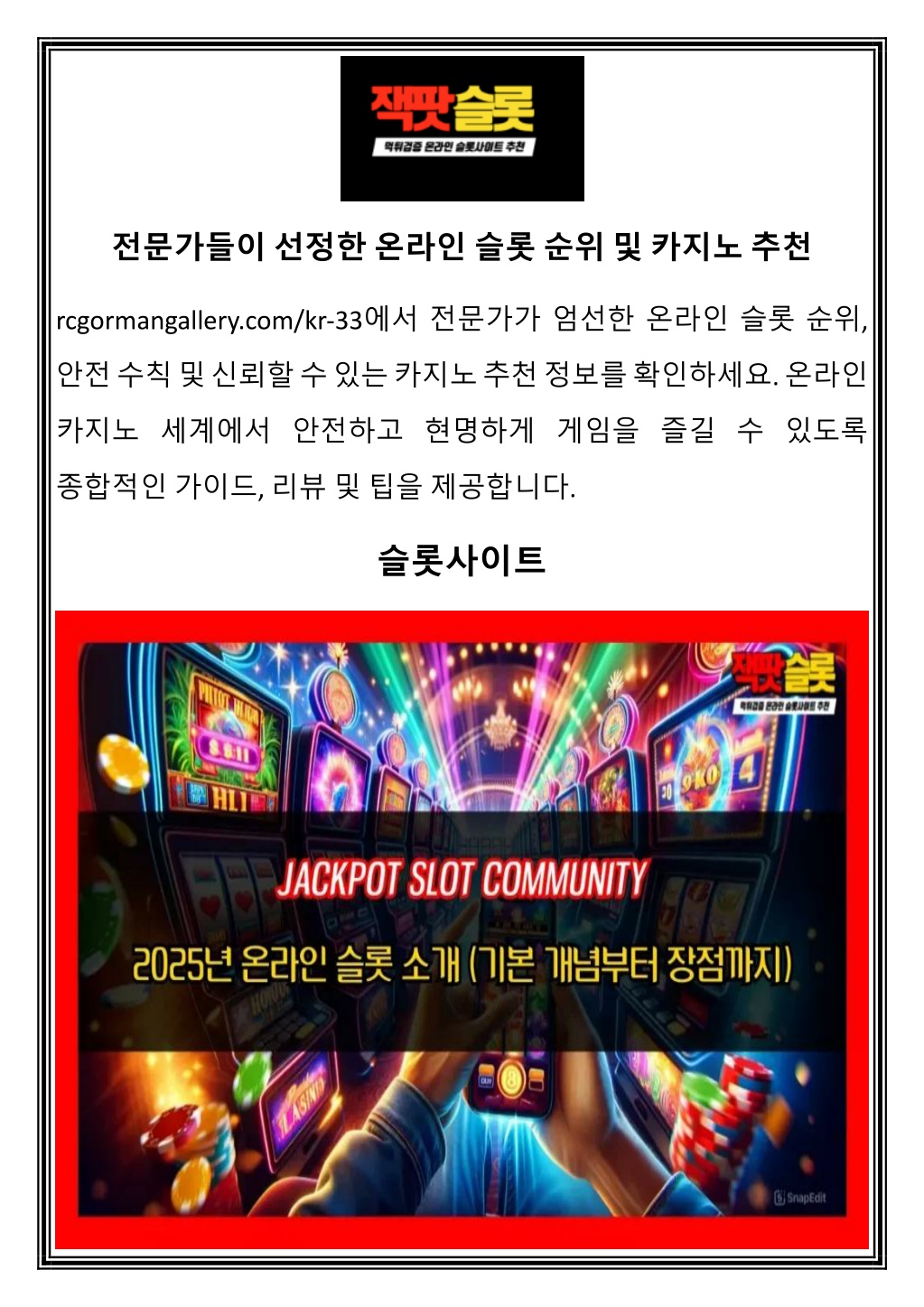 rcgormangallery.com/kr-33uc5d0uc11c uc804ubb38uac00uac00 uc5c4uc120ud55c uc628ub77cuc778 uc2acub86f uc21cuc704, uc548uc804 uc218uce59 ubc0f uc2e0ub8b0ud560 uc218 uc788ub294 uce74uc9c0ub178 ucd94ucc9c uc815ubcf4ub97c ud655uc778ud558uc138uc694. uc628ub77cuc778 uce74uc9c0ub178 uc138uacc4uc5d0uc11c uc548uc804ud558uace0 ud604uba85ud558uac8c uac8cuc784uc744 uc990uae38 uc218 uc788ub3c4ub85d uc885ud569uc801uc778 uac00uc774ub4dc, ub9acubdf0 ubc0f ud301uc744 uc81cuacf5ud569ub2c8ub2e4.
