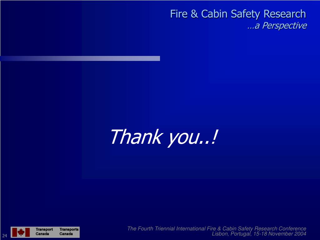 Fire & Cabin Safety Research…a Perspective Thank you..! The Fourth Triennial International Fire & Cabin Safety Research Conference Lisbon, Portugal, 15-18 November 2004 24