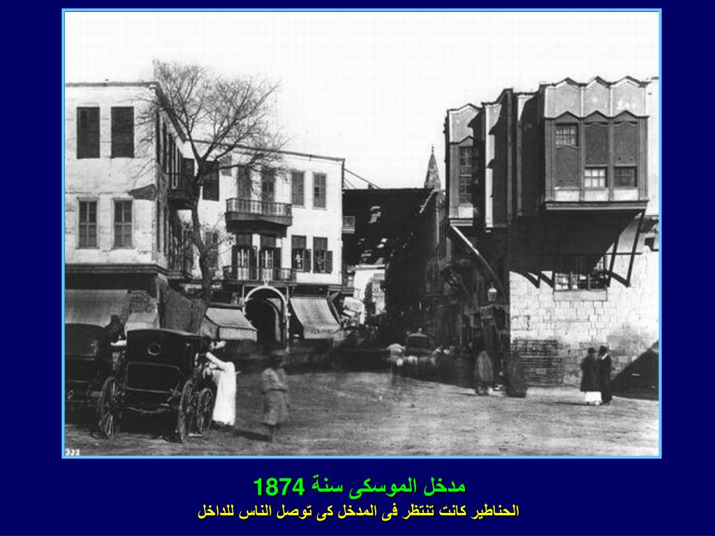 مدخل الموسكى سنة 1874 الحناطير كانت تنتظر فى المدخل كى توصل الناس للداخل