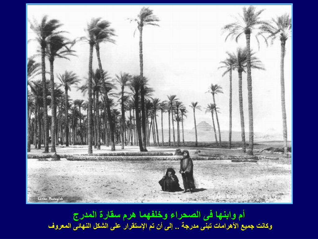 أم وابنها فى الصحراء وخلفهما هرم سقارة المدرج وكانت جميع الأهرامات تبنى مدرجة .. إلى أن تم الإستقرار على الشكل النهائى المعروف