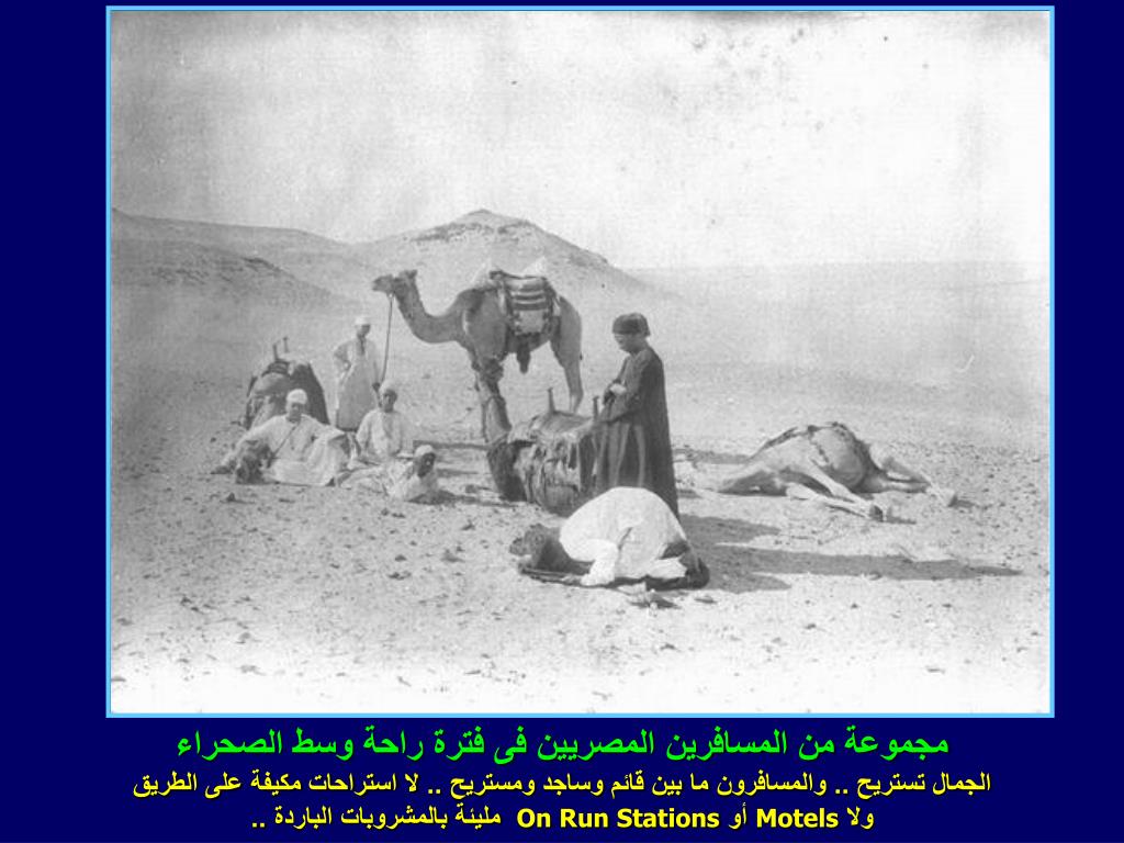 مجموعة من المسافرين المصريين فى فترة راحة وسط الصحراء الجمال تستريح .. والمسافرونما بين قائم وساجد ومستريح .. لا استراحات مكيفة على الطريق ولاMotelsأوOn Run Stationsمليئة بالمشروبات الباردة ..