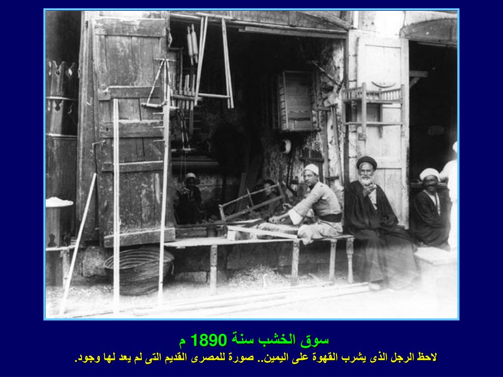 سوق الخشب سنة 1890 م لاحظ الرجل الذى يشرب القهوة على اليمين.. صورةللمصرى القديم التى لم يعد لها وجود.