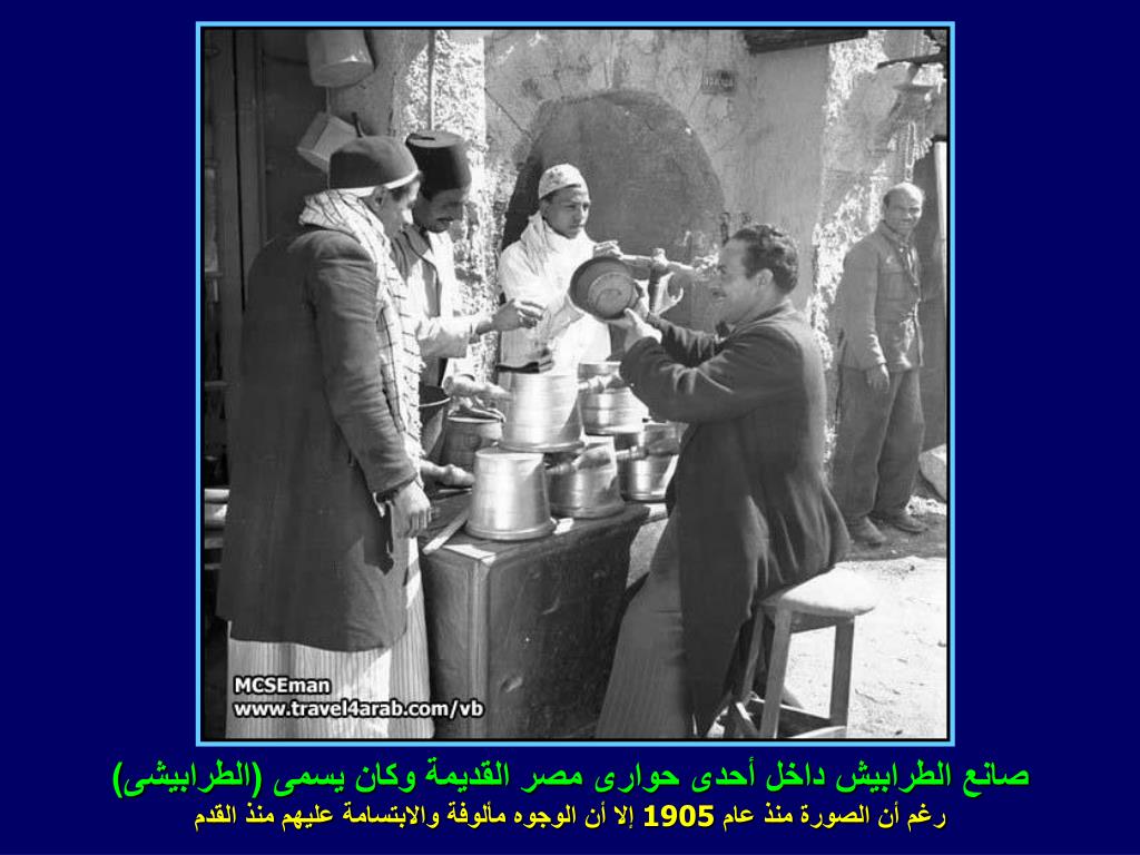 صانع الطرابيش داخل أحدى حوارى مصر القديمة وكان يسمى (الطرابيشى) رغم أن الصورة منذ عام 1905 إلا أن الوجوه مألوفة والابتسامة عليهم منذ القدم