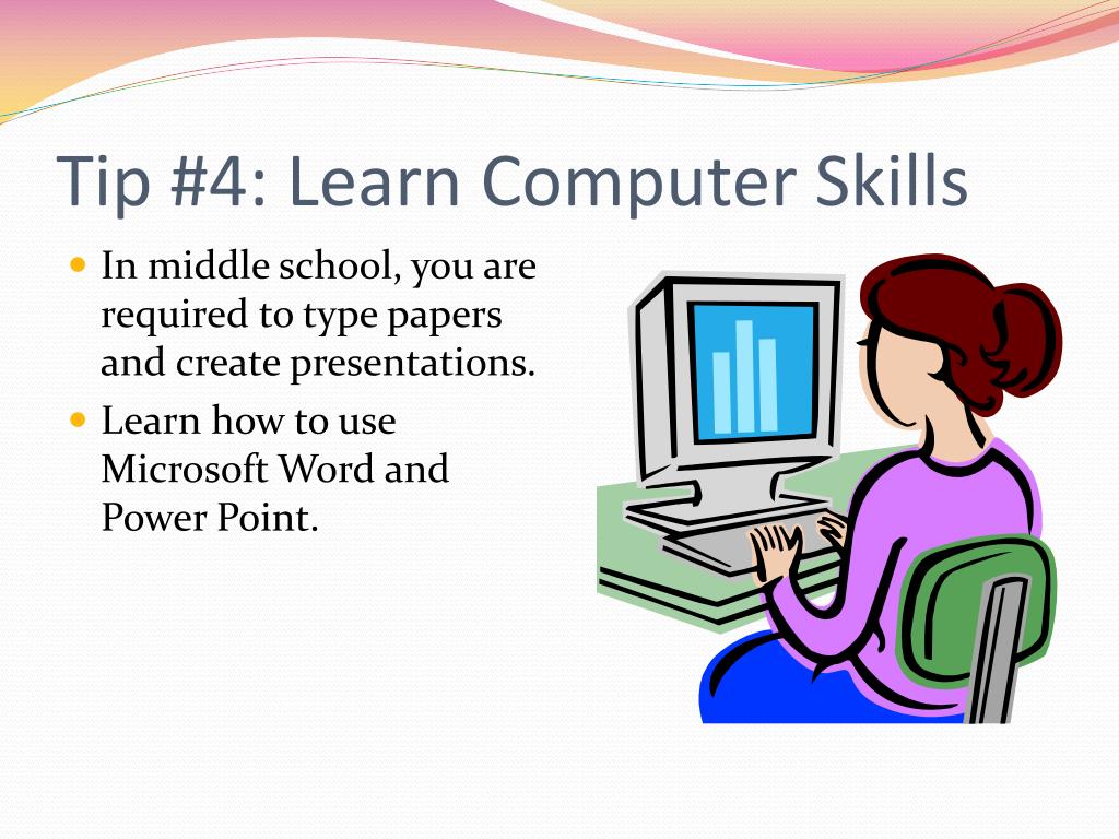 Tip #4: Learn Computer Skills • In middle school, you are required to type papers and create presentations. • Learn how to use Microsoft Word and Power Point.