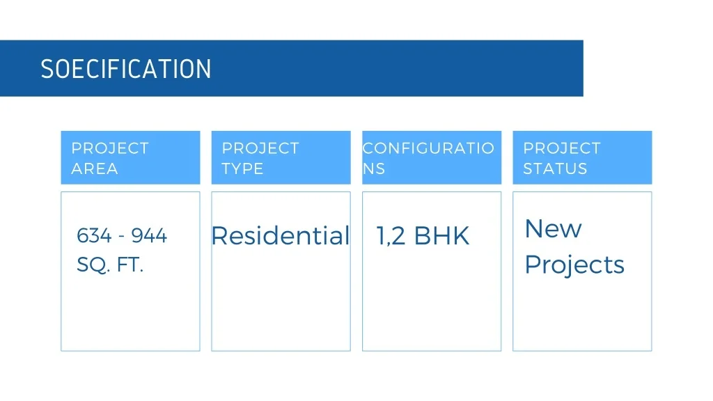 SOECIFICATION PROJECT AREA PROJECT TYPE CONFIGURATIO NS PROJECT STATUS New Projects Residential 1,2BHK 634 - 944 SQ. FT.