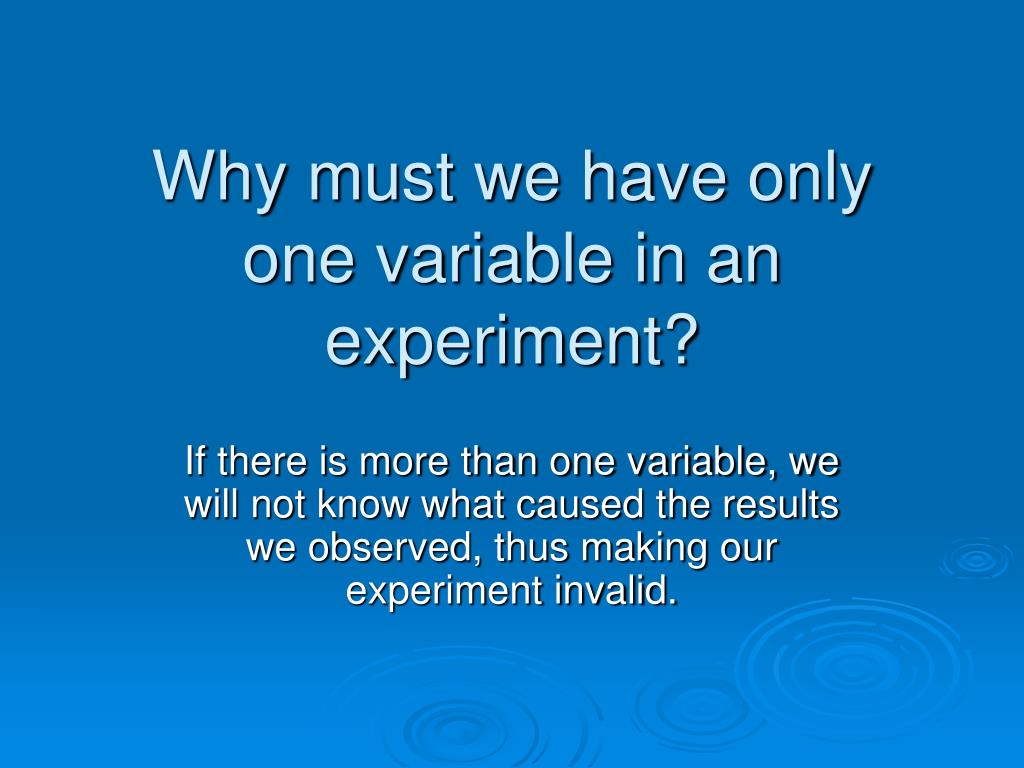 Why must we have only one variable in an experiment? If there is more than one variable, we will not know what caused the results we observed, thus making our experiment invalid.