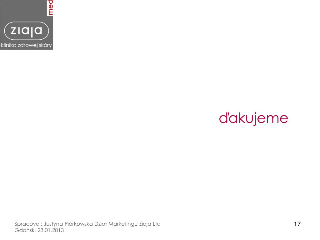 ďakujeme Spracoval: Justyna Piórkowska Dział Marketingu Ziaja Ltd Gdańsk, 23.01.2013