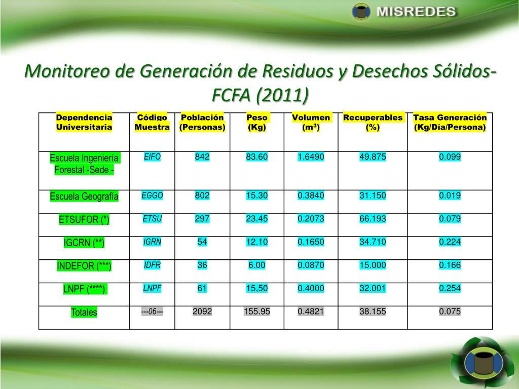 Monitoreo de Generación de Residuos y Desechos Sólidos-FCFA (2011)