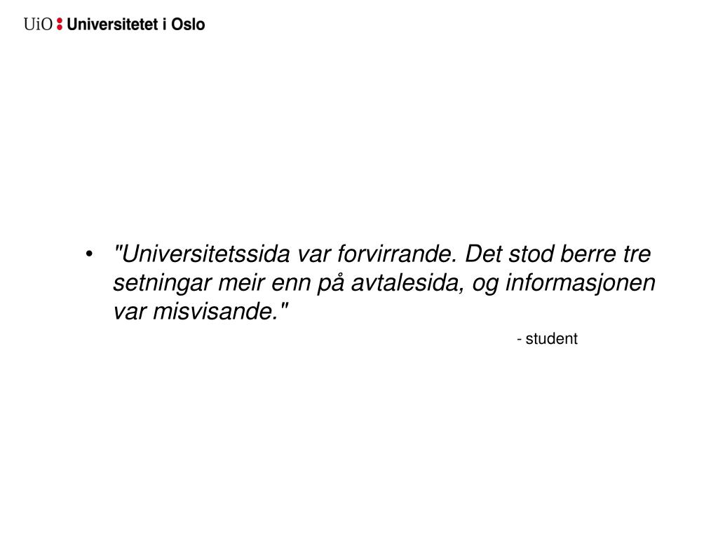 "Universitetssida var forvirrande. Det stod berre tre setningar meir enn på avtalesida, og informasjonen var misvisande." - student