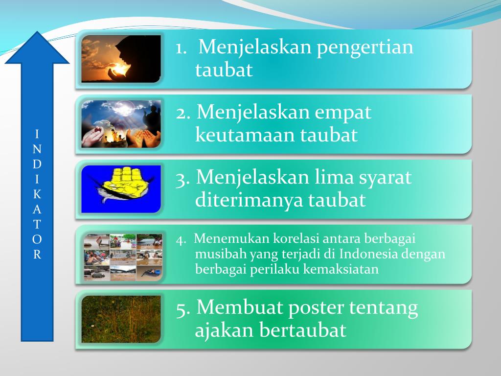 Pendidikan Agama Islam kelas 11. Perilaku terpuji “TAUBAT”. I N D I K A T O R. Ayat-ayat al-Qur`an tentang TAUBAT/MOHON AMPUN:. QS. 40: 55. QS. 2: 160. QS. 42: 5, 25. QS. 3: 17, 86-90, 135, 136. QS. 47: 19. QS. 4: 17-18, 26, 64, 106, 110. QS. 51: 18. QS. 5: 39, 74. TOTAL
