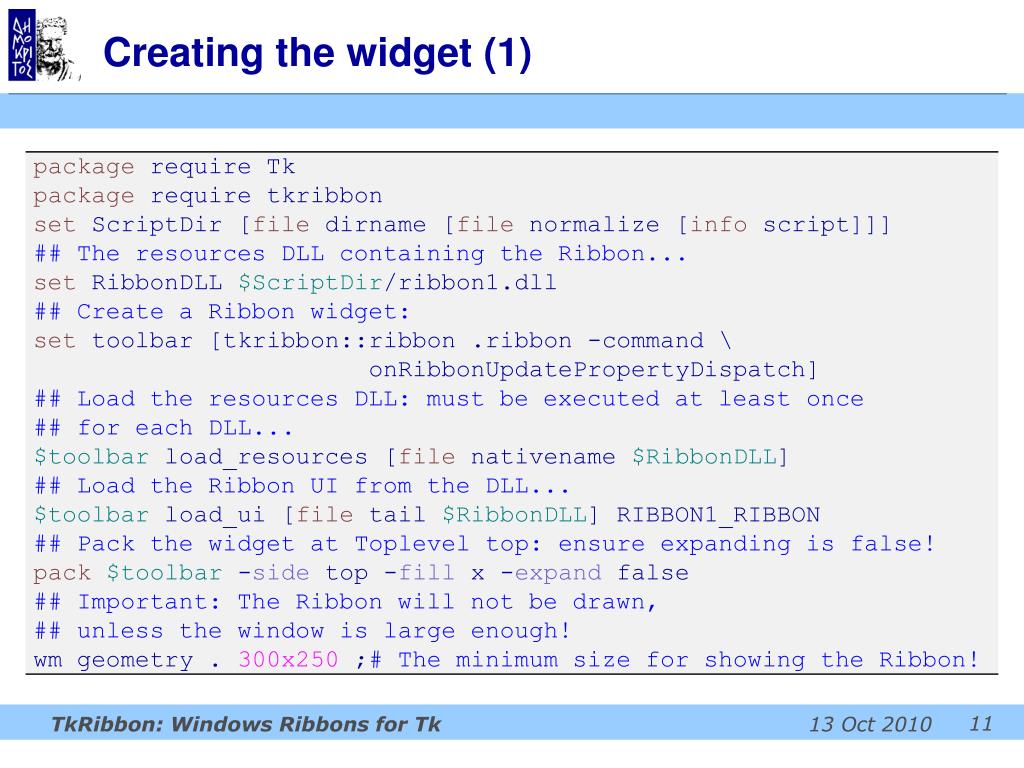 Creating the widget (2) TkRibbon: Windows Ribbons for Tk