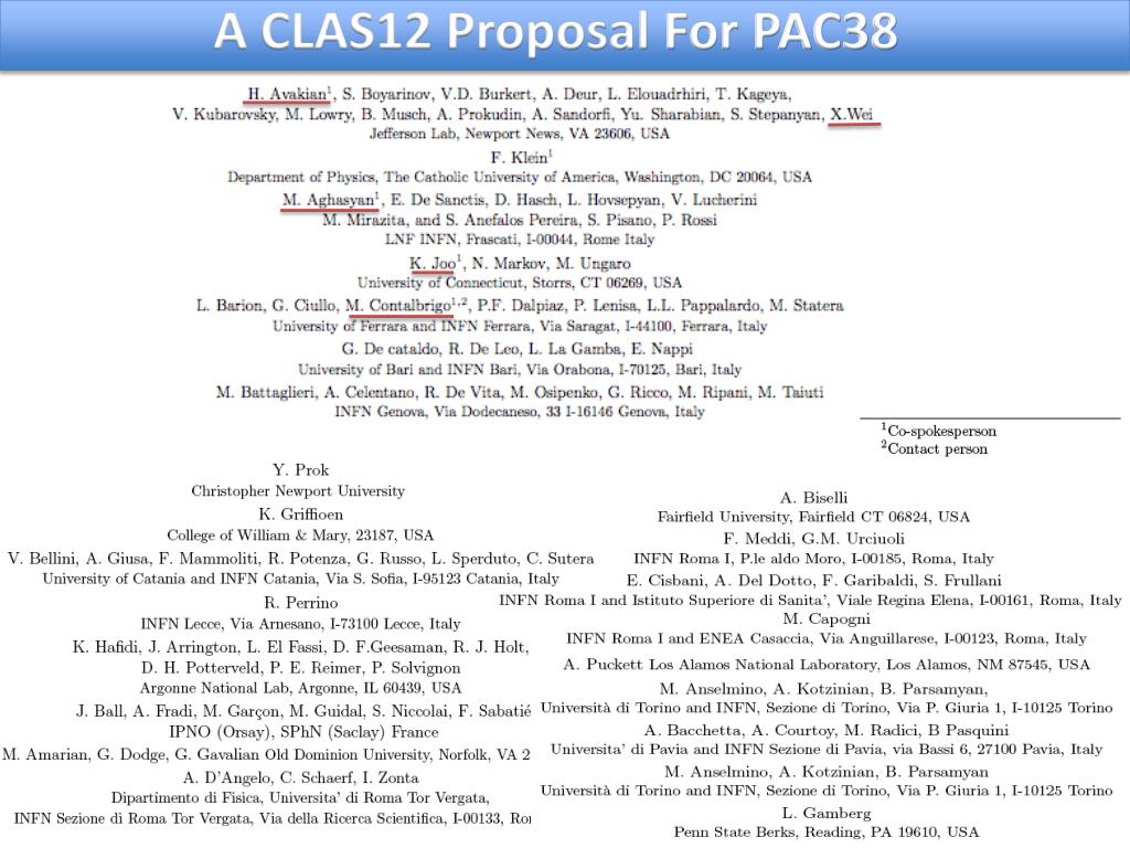 Transverse spin effects in SIDIS at 11 GeV with transversely polarized target u sing the CLAS12 detector. (A CLAS12 experiment proposal for PAC39). Contalbrigo Marco INFN Ferrara. JLab PAC 39 – Open session June 18, 2012 Newport News. A CLAS12 Proposal For PAC38.