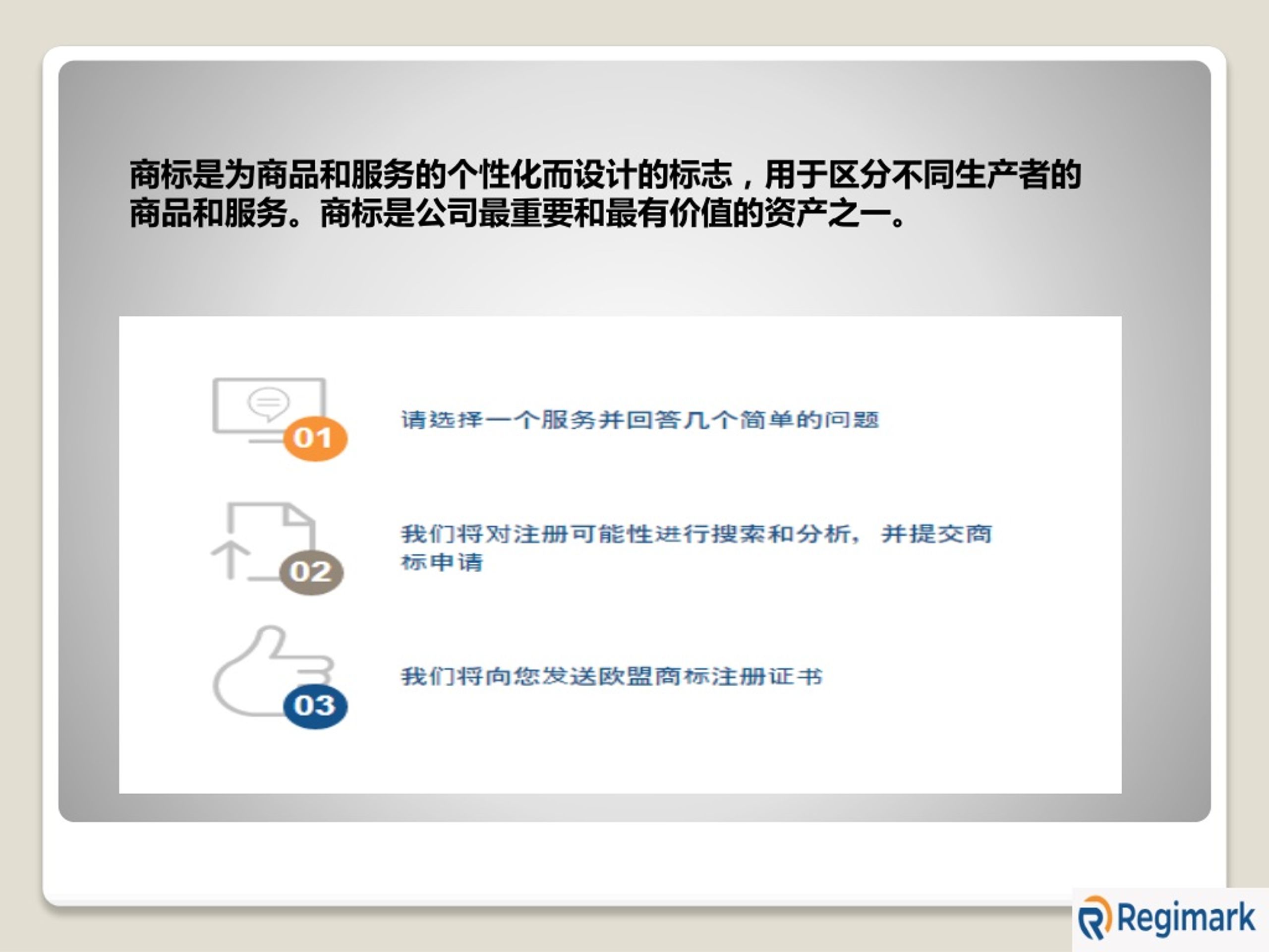 u5546u6807u662fu4e3au5546u54c1u548cu670du52a1u7684u4e2au6027u5316u800cu8bbeu8ba1u7684u6807u5fd7uff0cu7528u4e8eu533au5206u4e0du540cu751fu4ea7u8005u7684u5546u54c1u548cu670du52a1u3002u5546u6807u662fu516cu53f8u6700u91cdu8981u548cu6700u6709u4ef7u503cu7684u8d44u4ea7u4e4bu4e00u3002u000b<br><br>u9605u8bfbu66f4u591a uff1ahttps://regimark.cn/