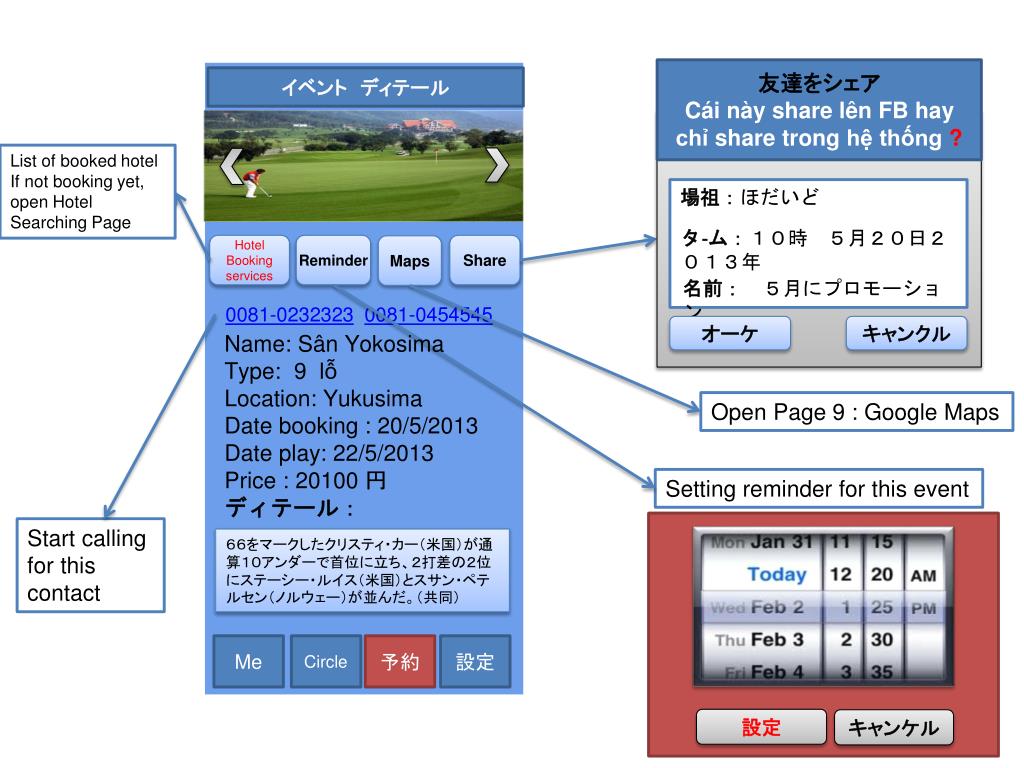 Splash --> Login --> Home Page GDO Member Login TuanDD 25歳 ベトナム Log me out UserName Share your experience about GDO Golfer Services Password Create new invitation View my Calender LOGIN Show invitation’s request View my Message REGISTER Me Circle 予約 設定