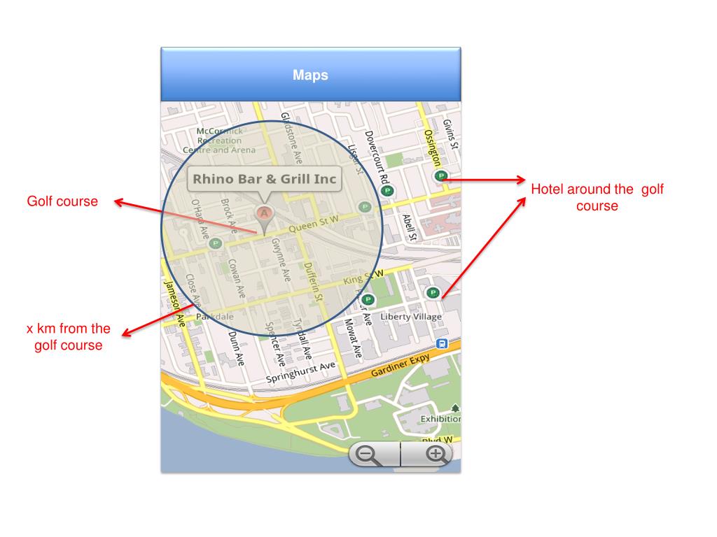 Maps Hotel around the golf course Golf course x km from the golf course