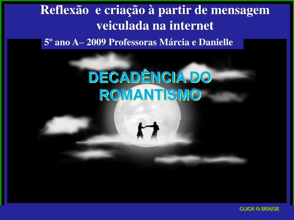 Reflexão e criação à partir de mensagem veiculada na internet 5º ano A– 2009 Professoras Márcia e Danielle DECADÊNCIA DO ROMANTISMO CLICK O MOUSE