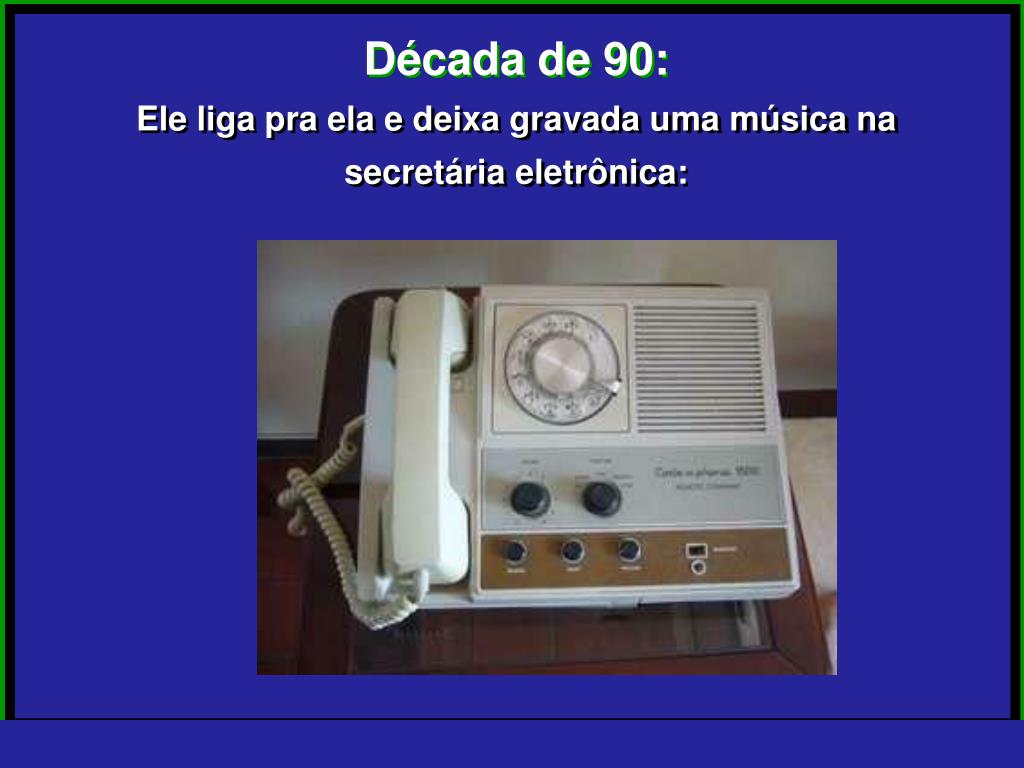 Década de 90: Ele liga pra ela e deixa gravada uma música na secretária eletrônica: