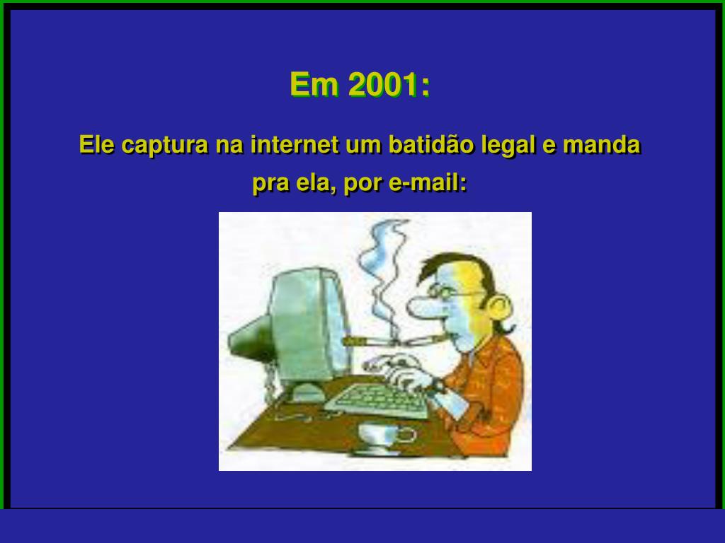 Em 2001: Ele captura na internet um batidão legal e manda pra ela, por e-mail: