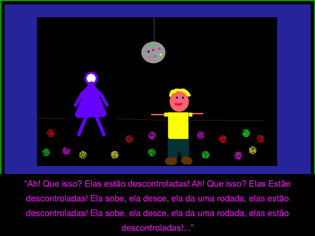 “Ah! Que isso? Elas estão descontroladas! Ah! Que isso? Elas Estão descontroladas! Ela sobe, ela desce, ela da uma rodada, elas estão descontroladas! Ela sobe, ela desce, ela da uma rodada, elas estão descontroladas!...”