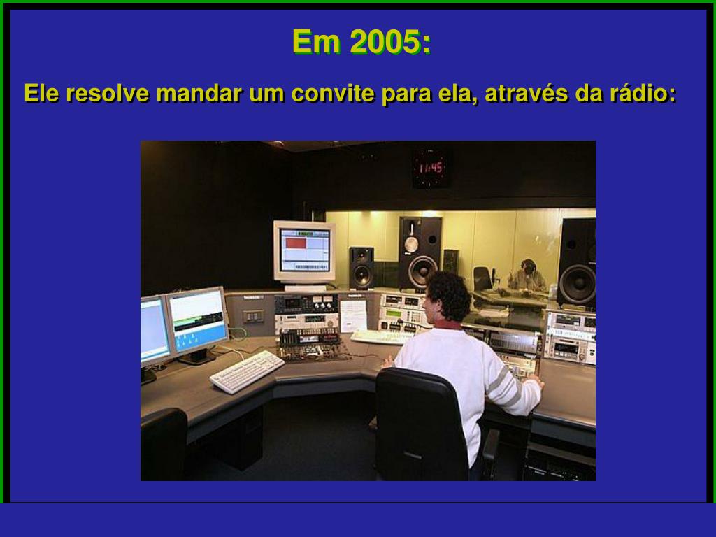 Em 2005: Ele resolve mandar um convite para ela, através da rádio: