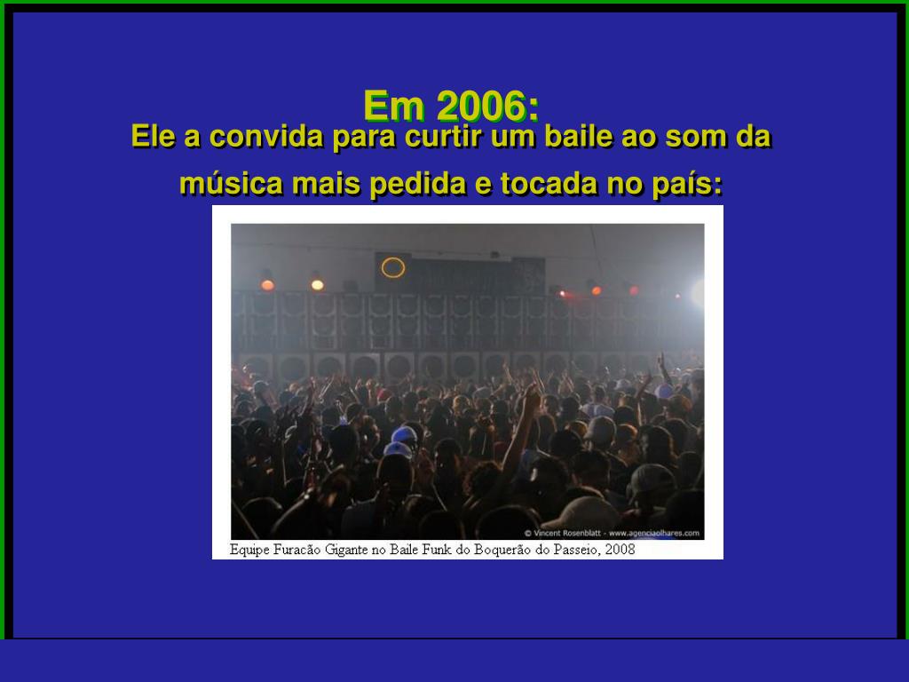 Em 2006: Ele a convida para curtir um baile ao som da música mais pedida e tocada no país: