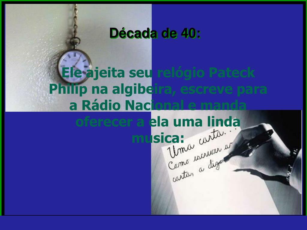 Década de 40: Ele ajeita seu relógio Pateck Philip na algibeira, escreve para a Rádio Nacional e manda oferecer a ela uma linda musica: