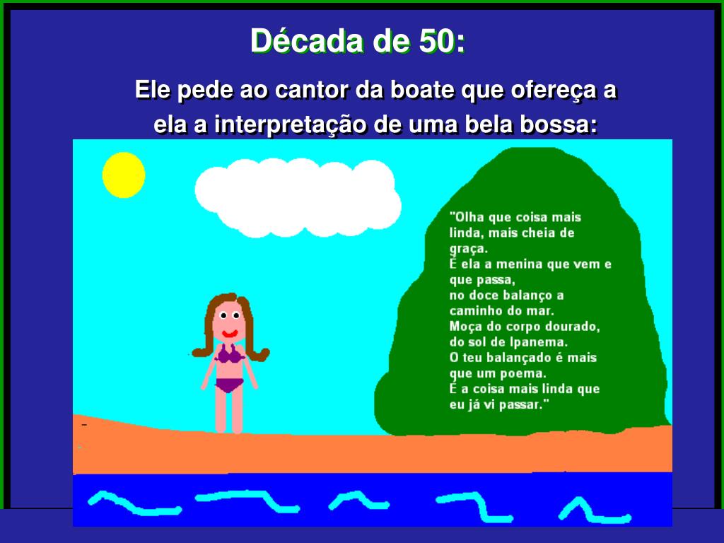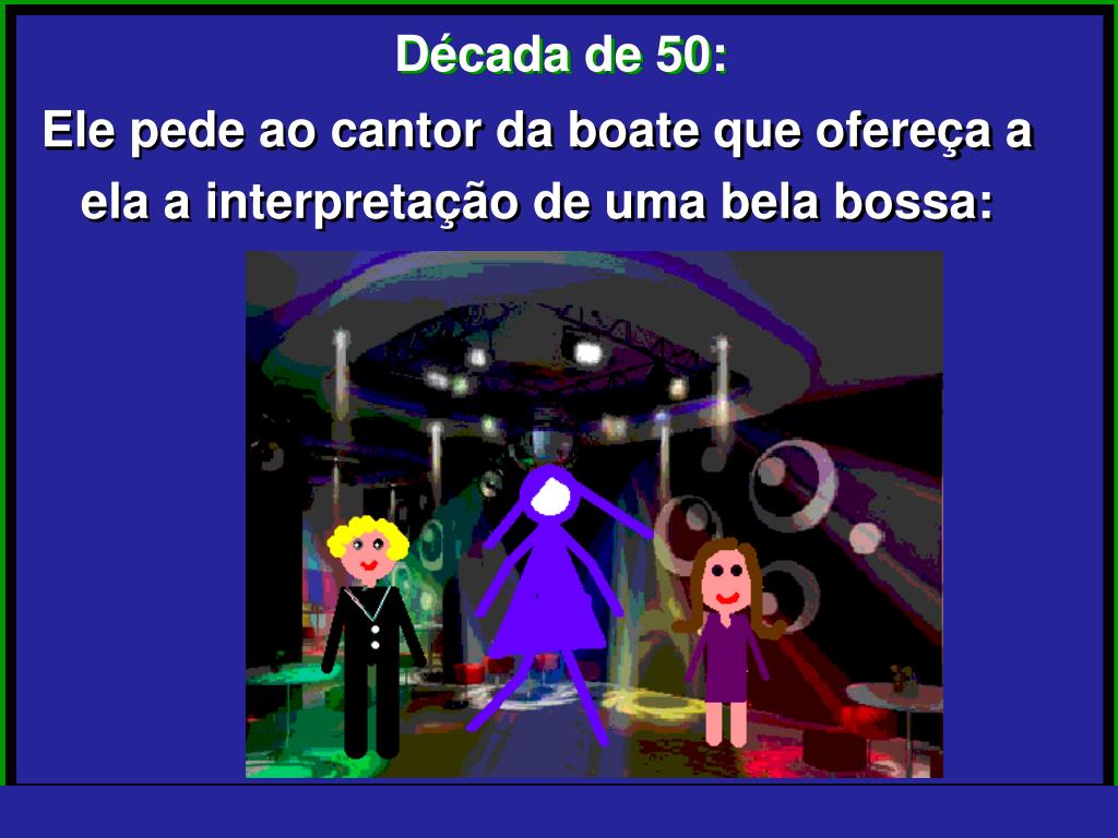 Década de 50: Ele pede ao cantor da boate que ofereça a ela a interpretação de uma bela bossa: