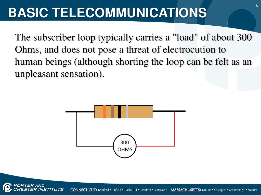 BASIC TELECOMMUNICATIONS The subscriber loop typically carries a "load" of about 300 Ohms, and does not pose a threat of electrocution to human beings (although shorting the loop can be felt as an unpleasant sensation).