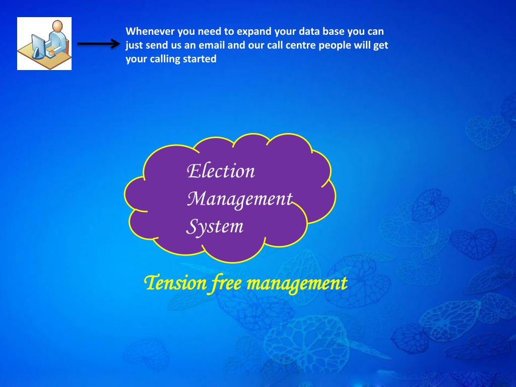 Whenever you need to expand your data base you can just send us an email and our call centre people will get your calling started Election Management System Tension free management