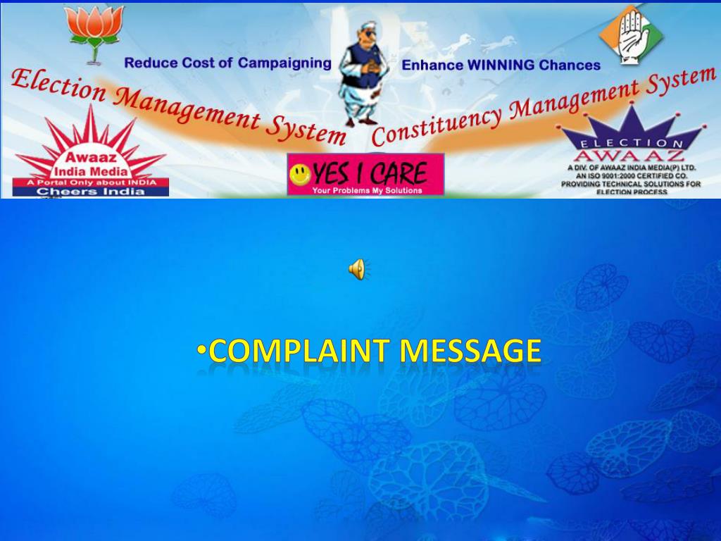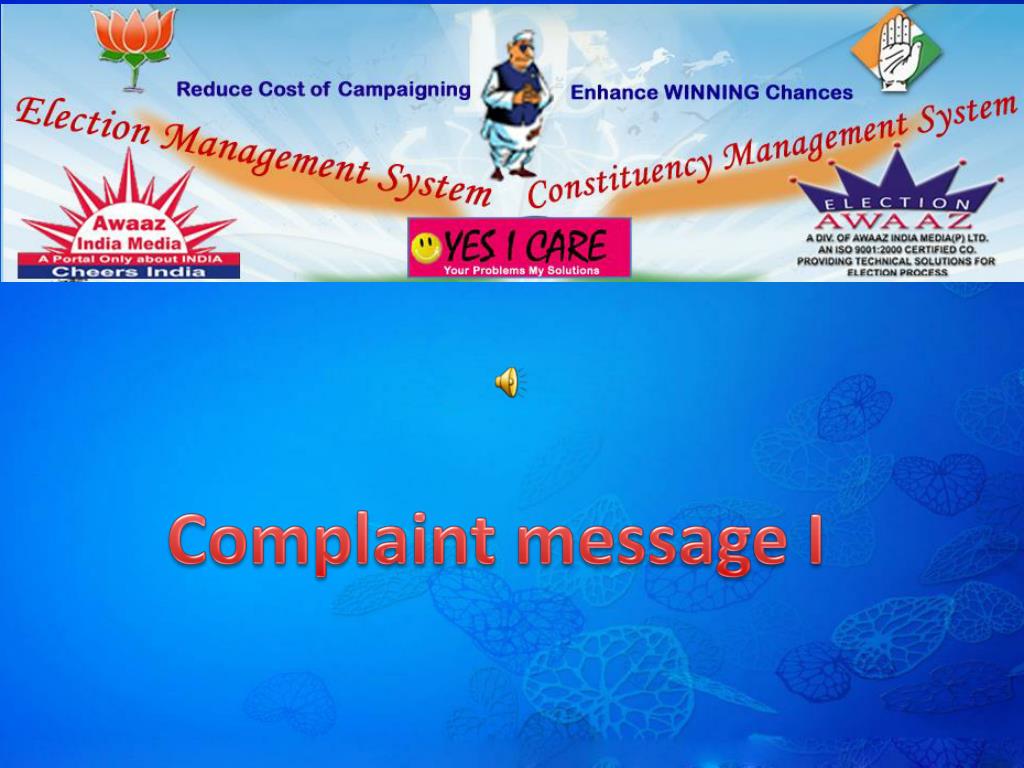 MEDIA FILES FOR • Candidates interaction with booth level agent • Candidates welcome message • Complaint message I • Complaint message ii